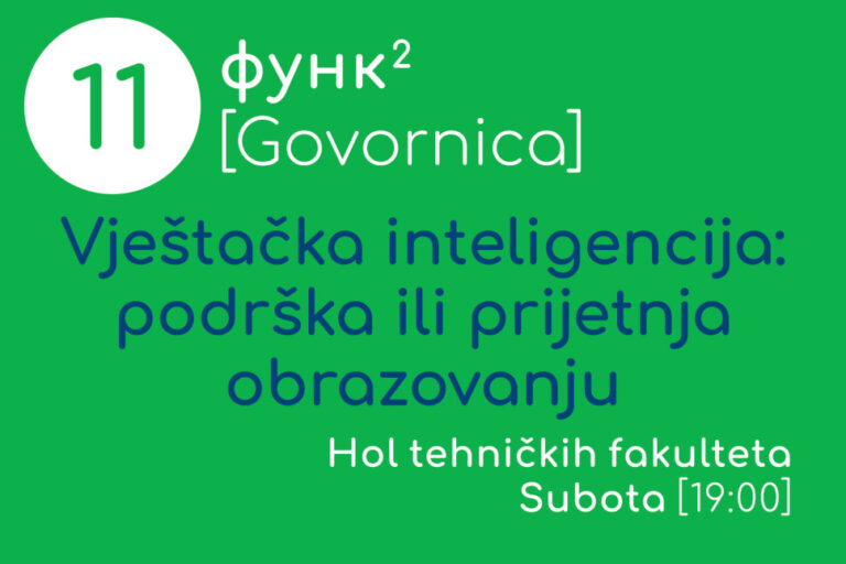 Podsjećamo, Festival umjetnosti, nauke i kulture – FUNK pokrenut je prošle godine u okviru obilježavanja jubileja 50 godina Univerziteta Crne Gore, s ciljem da promoviše umjetnost, nauku i kulturu, studijske programe, kao i naučnu i umjetničku produkciju studenata i akademskog osoblja. Ove godine, od 1. oktobra do 1. novembra donosi 30 programa u devet festivalskih cjelina: Govornica, Forum, Kino, Teatar, Izložba, Knjiga, Radionice, Sport i Svirke.
