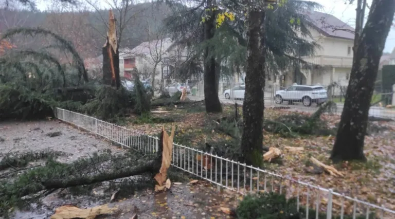 Tokom minule noći grom je udario u stablo koje se nalazi u dvorištu Osnovne škole „Mileva Lajović Lalatović“ u Nikšiću, i tom prilikom napravljena je manja šteta na dijelu krovne konstrukcije objekta, a polomljen je i jedan prozor, prenosi RTNK.