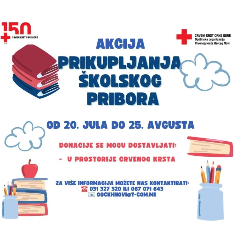 Iz Crvenog krtsa Herceg Novi nastavljaju i ove godine akciju prikupljanja školskog pribora kako bi djeci, roditeljima i starateljima iz socijalno ugroženih porodica olakšali i uljepšali polazak u školu.