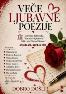 Večeras u NB „Radosav Ljumović“ veče ljubavne poezije
