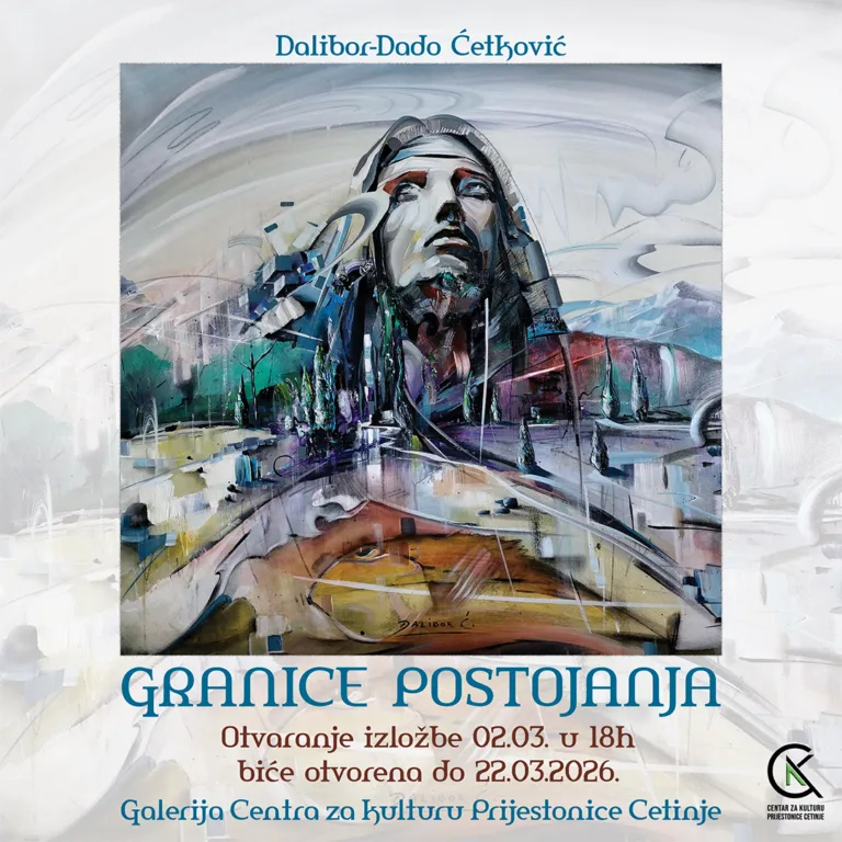 U galeriji Centar za kulturu Prijestonice Cetinje, u ponedjeljak, 2. marta u 18 časova, biće otvorena samostalna izložba Dalibora Dada Ćetkovića pod nazivom „Granice postojanja“.