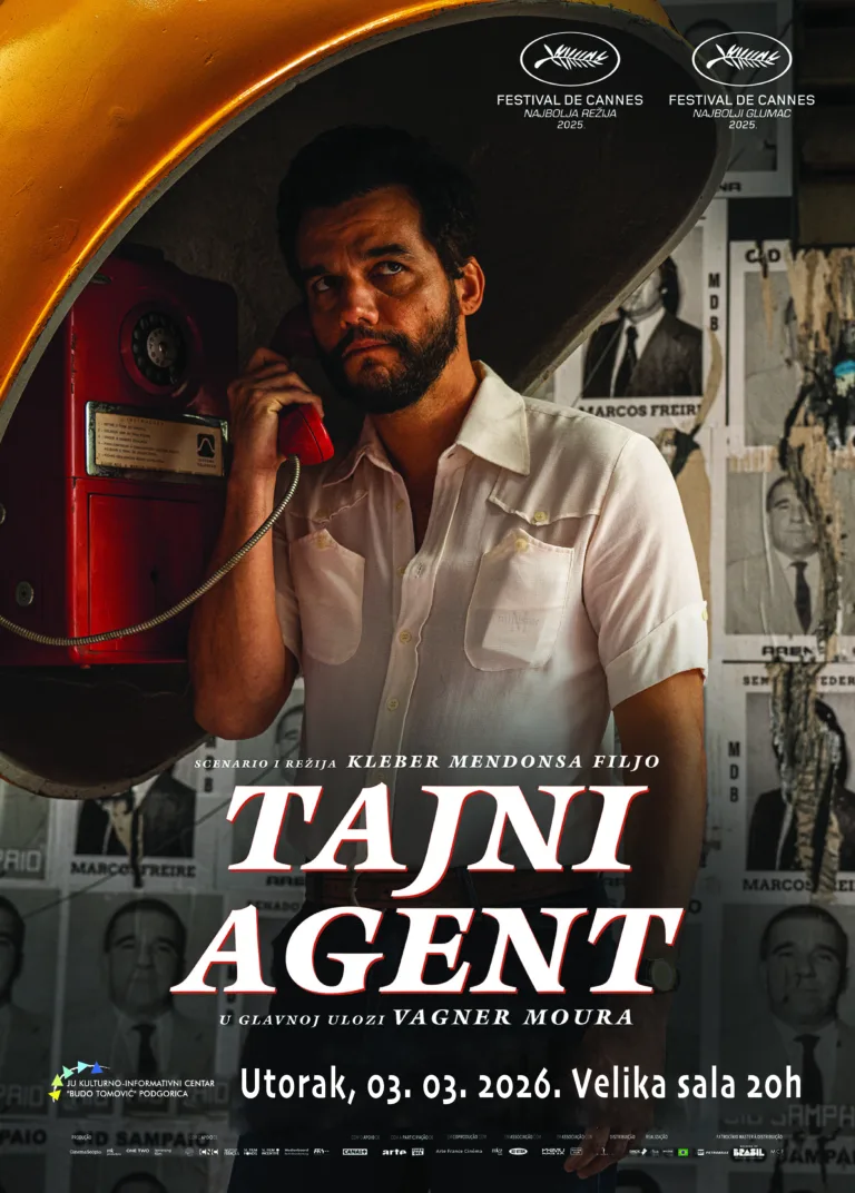 Filmski program KIC-a „Budo Tomović” organizuje u okviru revije „U susret Oskaru” projekciju višestruko nagrađivanog brazilskog trilera „Tajni agent/The Secret Agent” (2025), saopšteno je iz KIC-a.